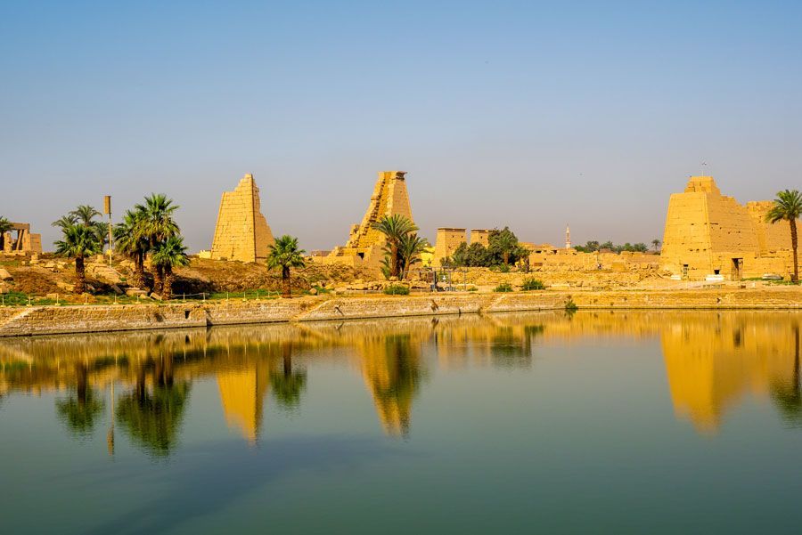 Llegada al aeropuerto internacional de Hurghada. Recepción, salida hacia Luxor, traslado al crucero por el río Nilo y almuerzo a bordo. Visita al Templo de Luxor, fue realizada durante el Imperio Nuevo. Estaba unido al templo de Karnak mediante una avenida flanqueada por esfinges. Fue construido por dos faraones fundamentalmente, Amenhotep III (construyó la zona interior) y Ramsés II (finalizó el templo). Visita al Templo de Karnak, en el antiguo Egipto, especialmente durante el Imperio Nuevo, fue el más influyente centro religioso. El templo principal estaba dedicado al culto del dios Amón Ra, pero como en otros templos egipcios, también se veneraba a otras divinidades. Cena y alojamiento a bordo.