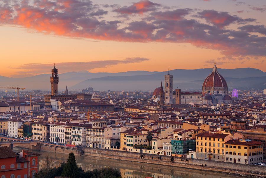 Desayuno en el hotel. Visita panorámica de la ciudad, cuna del renacimiento y de la lengua italiana. Pasearemos por esta ciudad rebosante de Arte, Historia y Cultura, admirando la Catedral de Santa María dei Fiori con su bello Campanille el Baptisterio decorado con las famosas puertas del paraíso, por donde pasaron personajes tan conocidos como Miguel Ángel o Dante Aligheri. A la hora indicada salida en dirección a Asís, donde visitaremos la ciudad y la Basílica de San Francisco para proseguir hasta Roma Ciudad Eterna. Alojamiento.